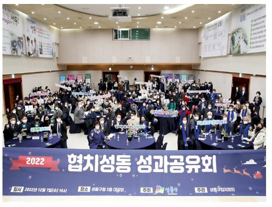 [스포츠와 엔터테인먼트의 만남 '스포테이너즈(SPORTAINERS)', 안봉준기자] 서울 성동구가 지난 7일 구청 3층 대강당에서 지역사회혁신계획 추진 관계자 및 주민 120여 명과 함께 '2022년 협치성동 성과공유회'를 개최했다.