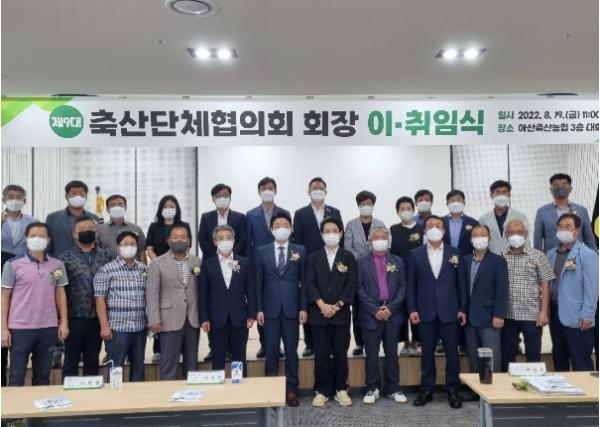 아산시 축산단체협의회가 지난 19일 축산농가와 축산관계자 120여 명이 참석한 가운데 아산축협에서 ‘제8~9대 아산시 축산단체협의회장 이취임식’ 행사를 개최했다.