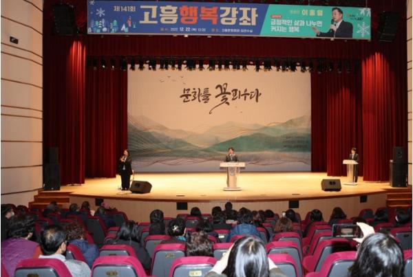 [스포츠와 엔터테인먼트의 만남 '스포테이너즈(SPORTAINERS)', 안봉준기자] 고흥군은 지난 22일 고흥문화회관 김연수실에서 군민과 기관?사회단체, 군인, 공직자 등 350여 명이 참석한 가운데 ‘제141회 고흥행복강좌’를 개최했다.