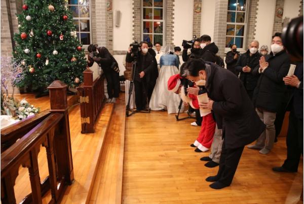 김 지사와 유흥식 추기경, 아산시장, 신자 등이 참석한 가운데 열린 이번 행사는 기념 공연과 유흥식 추기경의 성탄 미사, 다과회 등의 순으로 진행됐다.