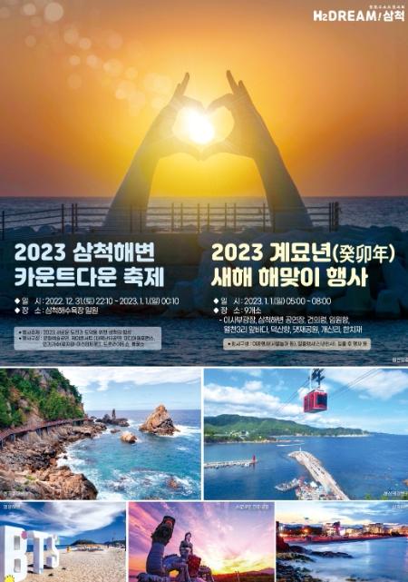 특히, 2022년 마지막 날인 12월 31일 저녁 10시부터 자정까지는 삼척해수욕장 삼척해변 내에서 불꽃놀이&레이저쇼, 카운트다운 세리머니, 축하 콘서트, 이벤트 행사 등 2023삼척해변 카운트다운 축제가 진행되며, 삼척해변 공원에는 빛 조형물을 설치하여 방문한 시민과 관광객들에게 볼거리도 제공할 계획이다.