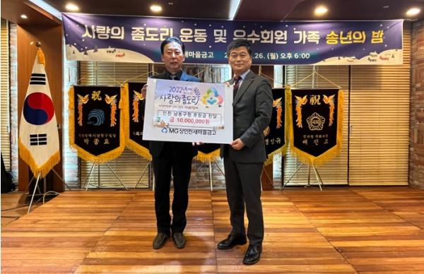 [스포츠와 엔터테인먼트의 만남 '스포테이너즈(SPORTAINERS)', 박재상기자] 인천시 남동구는 상인천새마을금고가 최근 “사랑의 좀도리 운동 및 우수회원 송년의 밤 행사”에서 연말 맞이 이웃돕기 후원금 1천만 원을 기탁했다고 30일 밝혔다.