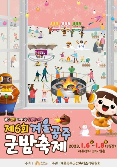 3일 공주시에 따르면, 코로나19 영향으로 3년 만에 대면 축제로 개최되는 제6회 겨울공주 군밤축제는 ‘공주 알밤과 떠나는 달콤한 여행’을 주제로 1월 6일부터 3일 동안 펼쳐진다.