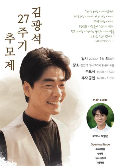 추모제는 김광석길 콘서트홀 김광석 전신동상 앞에서 진행하며, 추모공연은 김광석길 야외콘서트홀에서 개최될 예정이다. 오프닝 공연은 국악퓨전밴드 소리취한달이 그동안에 해왔던 무거웠던 추모공연을 故 김광석님을 추억하고 함께 즐기는 공연으로 새롭게 해석하여 흥을 돋우어 줄 예정이다.