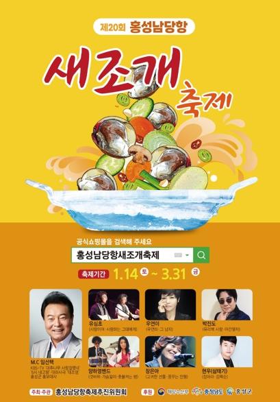 축제 첫날인 14일 16시에는 남당항 특설무대에서 열리는 개막식을 시작으로 유심초, 우연이, 박진도의 축하공연과 불꽃놀이 등 다양한 볼거리가 제공되며, 축제기간 동안 주말 및 설 연휴에는 관광객들이 직접 참여할 수 있는 노래자랑 대회, 새조개 까기 프로그램도 진행될 예정이다.