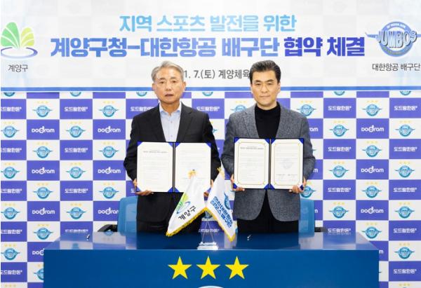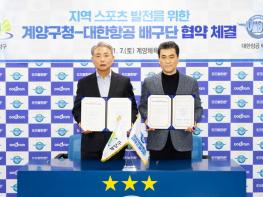 [스포츠와 엔터테인먼트의 만남 '스포테이너즈(SPORTAINERS)', 고초록기자] 인천광역시 계양구는 7일 대한항공 점보스 배구단과 지역 스포츠 발전을 위한 업무협약을 체결했다.