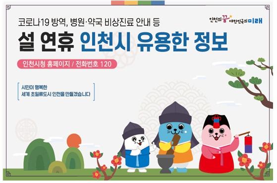 그 밖에도 농산물도매시장 개장 정보, 문화예술 행사 정보 등 연휴 기간 중 시민들이 알아두면 편리한 유용한 정보를 인천시 홈페이지에서 확인할 수 있다.