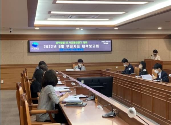 의정부시는 8월 18일 정부합동 및 시·군종합평가 지표 담당 팀장 10명이 모인 가운데 안동광 부시장 주재 아래 2022년도 정부합동 및 시·군종합평가 대비 부진지표 대책보고회를 개최했다.