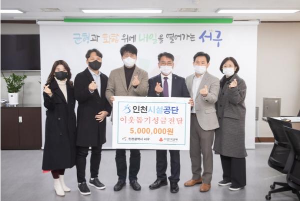 강범석 서구청장은 “탄탄한 복지공동체를 만드는 데 적극 참여해주신 인천시설공단에 감사드린다”며 “앞으로도 지역사회 나눔 문화 확산에 앞장서 주시길 바란다”고 전했다.