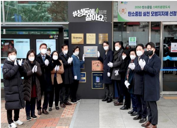 성동구는 지난해 12월 13일 열린 ‘2022 탄소중립 경연대회’에서 전국 지자체, 교육기관, 기업·기관 등 127개 단체가 참가한 가운데 환경부장관상을 수상하고 ‘탄소중립 실천 모범 지자체’ 현판을 수여받았다.