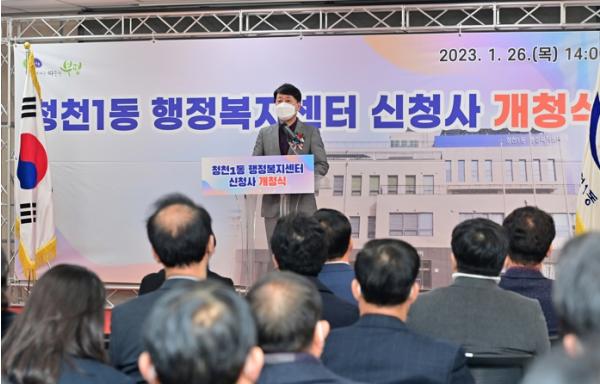 차준택 구청장은 “이번 신청사는 올해 하반기 청천1·2 재개발 구역 6천700여 세대 입주를 앞둔 상황에서 주민의 다양한 커뮤니티 조성 및 행정서비스 제공 공간으로서 역할을 다할 것”이라고 말했다.