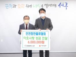 [스포츠와 엔터테인먼트의 만남 '스포테이너즈(SPORTAINERS)', 박재상기자] 인천 서구는 27일 인천항만물류협회가 이웃돕기 성금 600만 원을 전달했다고 30일 밝혔다.