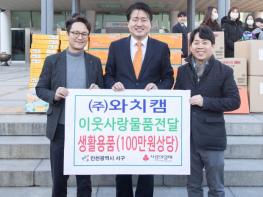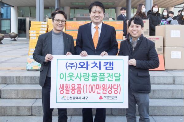 [스포츠와 엔터테인먼트의 만남 '스포테이너즈(SPORTAINERS)', 박재상기자] 인천 서구는 30일 ㈜와치캠, ㈜한강무역 등이 서구 내 복지시설을 위한 이웃돕기 물품을 전달했다고 밝혔다.