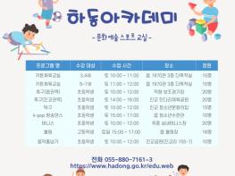 하동아카데미 문화·예술·스포츠 수강생 모집