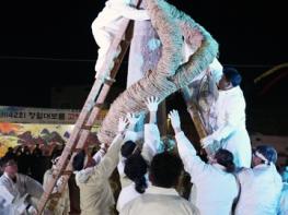 [스포츠와 엔터테인먼트의 만남 '스포테이너즈(SPORTAINERS)', 안봉준기자] 고창군 오거리당산제보존회가 정월대보름(음력 1월15일) 전야인 4일에 저녁 읍내 중앙당산 일대에서 마을 조상신과 수호신에게 주민의 안녕과 무병, 풍년농사를 기원하는 ‘제42회 고창오거리당산제’를 열었다.