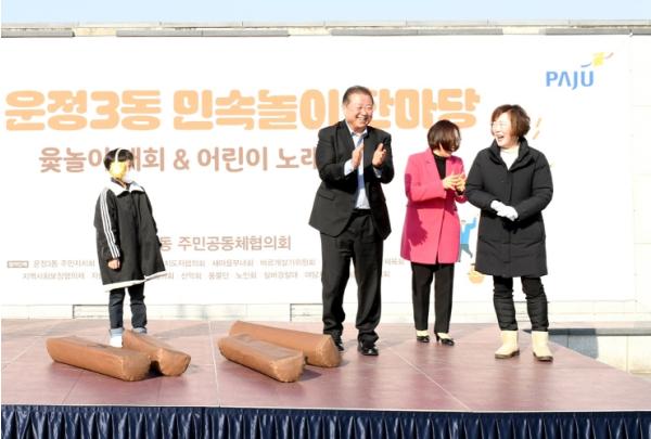 이날 민속놀이 한마당에는 김경일 파주시장, 윤후덕 국회의원, 이용욱 도의원, 조성환 도의원, 손성익 시의원 및 관내 기관·단체 관계자와 약 1,000여 명의 시민이 참석해 올 한 해의 만복을 기원하고 넉넉한 인정을 나누는 자리를 함께했다.