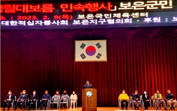 이날 행사에는 최재형 보은군수, 이경노 군의회부의장, 기관단체장 및 주민 등 500명이 참석한 가운데 대한적십자사봉사회 보은지구협의회 주관으로 개최했으며, 보은군 풍물연합회의 지신밟기를 시작으로 윷놀이대회를 진행해 군민화합 시간을 가졌다.