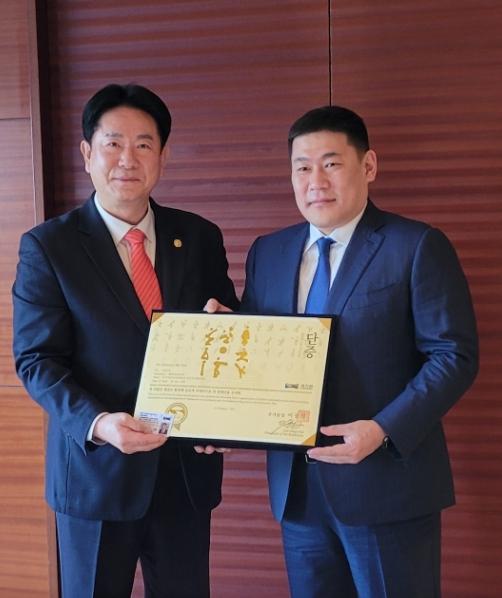 한편 이동섭 원장은 이날 어용에르덴 몽골 총리에게 몽골 태권도 발전에 기여한 공로로 명예 8단증을 수여했다.