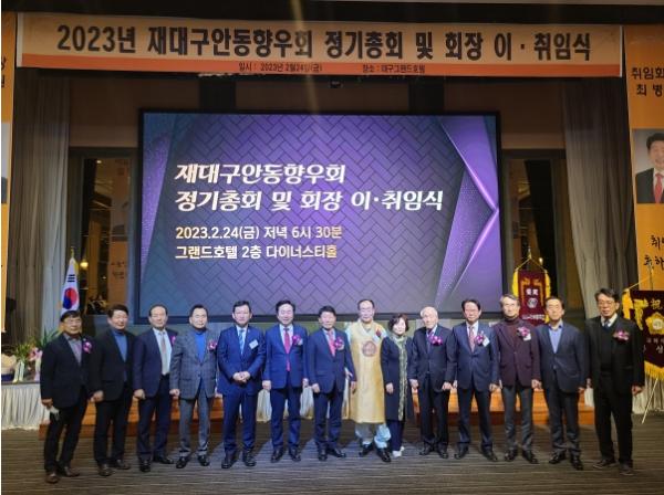 이날 대구권 향우회원들은 물론 권기창 안동시장과 류성걸 국회의원, 김형동 국회의원, 김종한 대구시 행정부시장, 이재하 상공회의소장 등 300여 명이 참석해 정기총회와 회장 이?취임식을 축하했다.