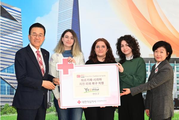 연수구는 인천지역 기초단체 중 최초로 1만 달러(1천260만 원) 규모의 지원금을 주한 튀르키예 대사관에 전달하고 구청 직원과 구민들을 대상으로 자발적인 성금 모금운동을 전개해 왔다.