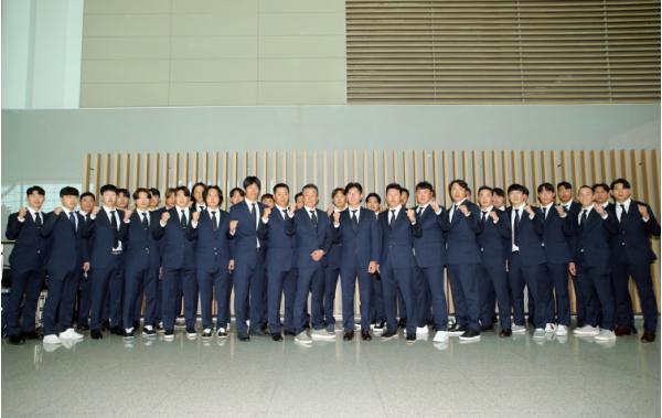 2023 월드베이스볼 클래식(WBC) 대한민국 대표팀이 지난 4일(토) 신원 남성복 브랜드인 ‘지이크’에서 특별 제작하여 후원한 ‘국가대표 수트’를 입고 인천공항에서 도쿄로 출국했다.