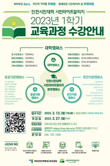 수강대상은 연령·학력·경력에 상관없이 인천시민 또는 인천 생활권자라면 누구나 원하는 캠퍼스의 강의를 학비부담 없이 들을 수 있으며 대학 등 캠퍼스시설을 이용할 수 있다. 또한 100시간 이상 강좌를 수료한 학습자에게는 인천 명예시민 학사 학위가 수여될 예정이다.