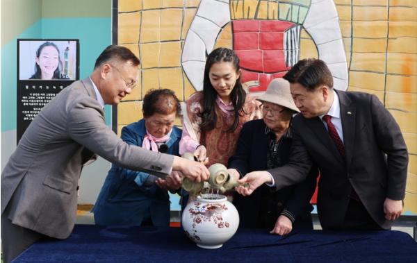 오영훈 지사와 김재욱 군수는 낙동강 물과 제주도 바닷물을 도자기에 담아 합치는 세리머니를 펼치며 소통과 화합의 메시지를 전했다.