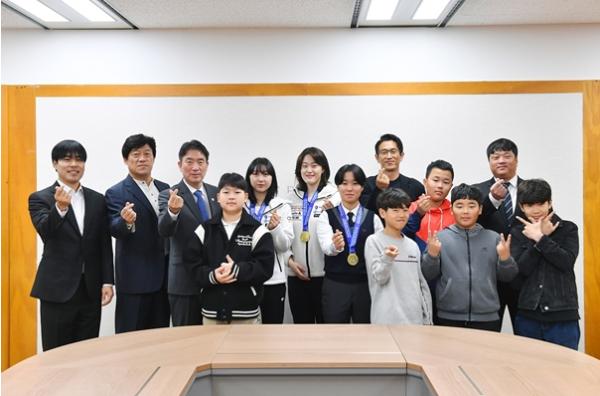 부산시는 어제(20일) 오전 10시 30분 ‘제104회 전국동계체육대회’에서 금메달 다관왕을 배출한 부산광역시 스키선수단을 국제의전실로 초청해 격려했다고 밝혔다.