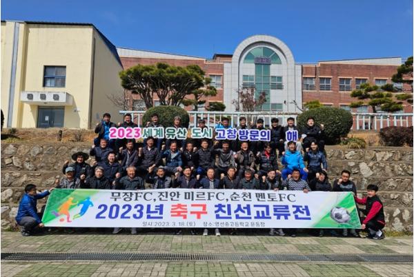 고창군 무장면 무장축구회가 지난 18일 무장 영선고등학교에서 진안 미르FC, 순천 멘토FC를 초청해 친선교류전을 가졌다.