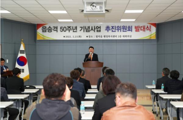 올해 읍 승격 50주년을 맞은 합덕읍이 다채로운 기념사업을 발굴 및 추진하기 위해 21일 합덕읍 행정복지센터에서 추진위원회 발대식과 현판식을 개최했다.