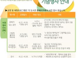 공연과 체험형 독서프로그램은 4월 4일 오전 10시부터 각 도서관 홈페이지를 통해 선착순으로 참여자를 모집한다.