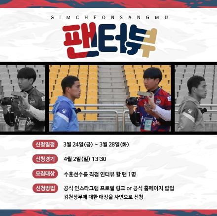 김천상무프로축구단이 프로 선수단을 직접 인터뷰할 팬을 모집한다.