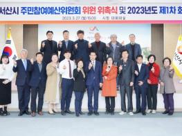 충남 서산시가 지난 27일 시청 대회의실에서 ‘제9기 서산시 주민참여예산위원회 위원 위촉식 및 2023년도 제1차 회의’를 개최하고 본격적인 주민참여예산 활동에 들어갔다고 밝혔다.