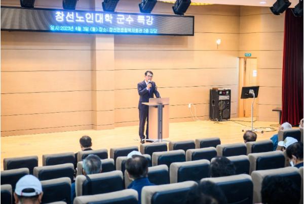 장충남 군수는 지난 3일 창선면종합복지회관에서 창선면 노인대학생 150명이 참석한 가운데 ‘ 활기차고 건강한 노후생활’ 이라는 주제로 특강을 실시했다.