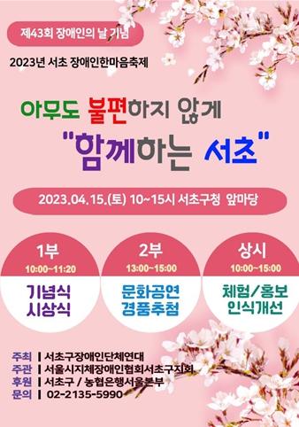 서울 서초구가 15일 제43회 장애인의 날을 맞이하여 장애인과 비장애인이 함께 즐기는 ‘장애인한마음축제’ 행사를 구청 광장에서 연다.