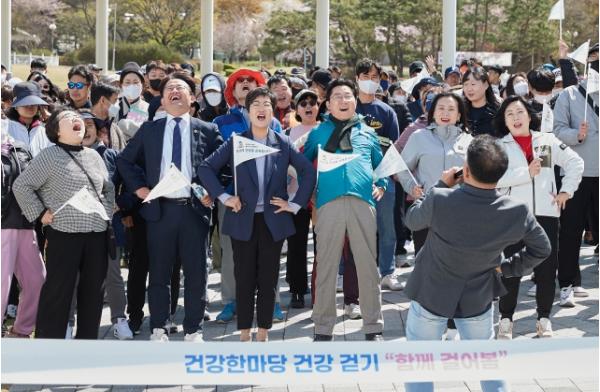 또, 신정호 둘레길 걷기대회를 통해 시민들이 함께 걸으며 봄날의 신정호 주변 자연과 경치를 감상하고 건강생활실천도 하는 시간을 가졌다.