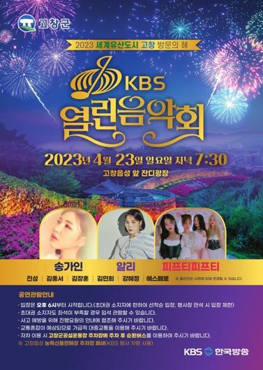 고창군이 오는 23일 고창읍성 잔디광장에서 군민 모두가 하나 되는 ‘KBS 열린음악회’를 개최한다고 밝혔다.