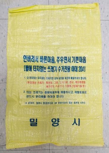 밀양시는 환경미화원 안전사고 방지를 위해 쓰레기종량제 봉투 중 특수마대(PP포대) 50리터 제작을 중단한다고 22일 밝혔다.