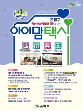 ‘아이맘택시’는 임산부와 영유아 자녀를 둔 가정에서 의료 목적으로 병원 방문 시 이용할 수 있는 전용 택시 서비스다. 심각한 저출산 문제에 대응하고자 은평에서 2020년 전국 최초로 시행했다.