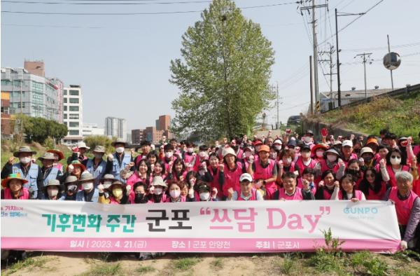 군포시는 기후변화주간(4.22~4.28) 및 지구의 날(4.22)을 기념하여 지난 21일 군포 안양천 산책로에서 ‘군포 안양천 쓰담 Day’ 캠페인을 개최했다.