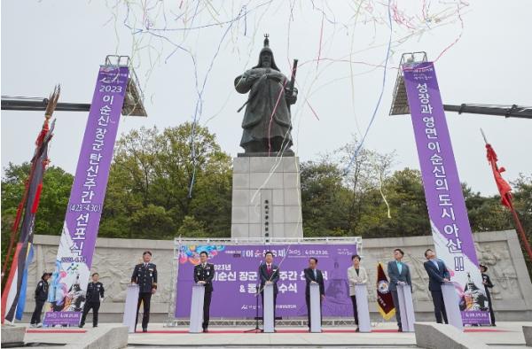 23일, 성웅 이순신 장군 탄신 제478주년을 맞아 신정호 이순신 동상 앞에서 탄신주간 선포와 함께 친수식을 거행했다.