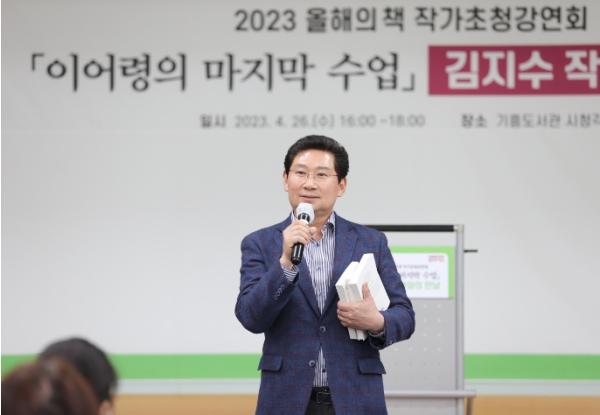 용인특례시는 26일 기흥도서관 시청각실에서 시민들이 올해의 책들 중 하나로 선정한 ‘이어령의 마지막 수업’을 쓴 김지수 작가를 초청해 특별 강연회를 열었다.