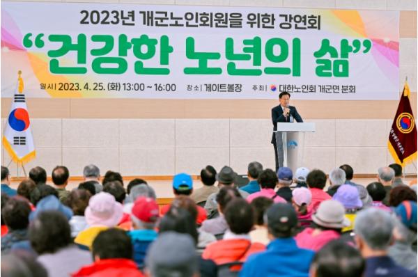 이날 강연회에는 개군면 노인회원 300여명과 대한노인회 각 읍·면 분회장, 관내 여러 기관단체장이 참여해 진행됐다.
