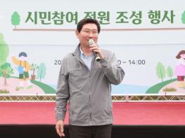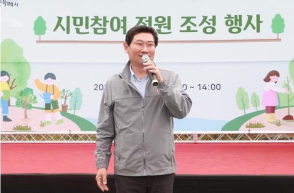 이상일 용인특례시장이 29일 처인구 마평동 김량대교 하부 경안천 둔치에서 열린 시민참여 정원 조성 행사에서 참가자들에게 한 말이다.