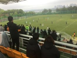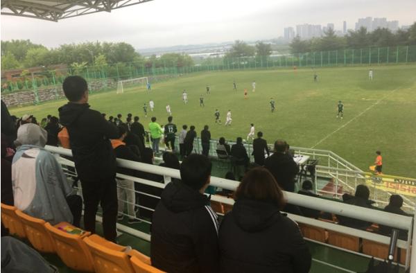 비가 내린 탓에 선수들이 잔디 운동장에서 미끄러질 때에는 ‘힘내라!“는 응원과 함께 격려의 박수가 터져 나왔고, 선수들이 찬 공이 상대방 골대를 살짝 스쳐 지나갈 때에는 ’아~‘라는 장탄식이 터져 나왔다.