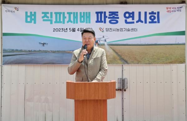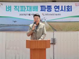 해나루쌀 등 고품질 쌀로 유명한 당진에서 4일 벼 직파재배 농법 확산을 위한 파종연시회가 개최됐다.