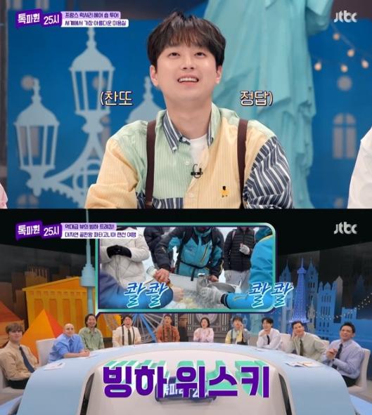 가내수공업 룰렛 판의 바늘을 손으로 돌려 ‘톡파원 25시’ 칸에 안착한 김숙과 이찬원은 결승전에서 가위바위보로 단 한 명의 승자를 가렸고 결국 이찬원이 승리, 시계의 주인이 됐다.