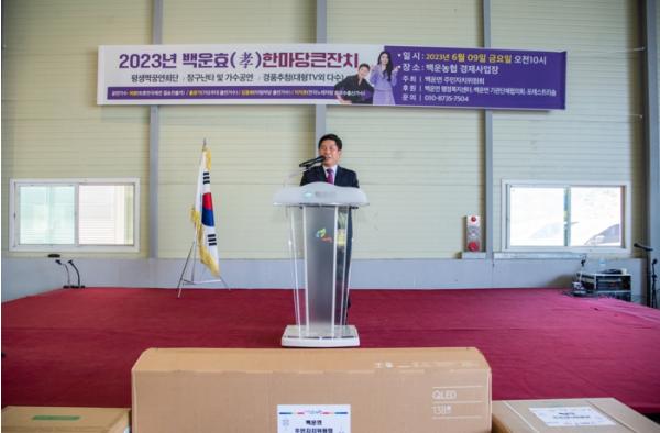 제천시 백운면 주민자치위원회가 지난 9일 백운농협 경제사업장에서 주민 600여 명을 초청해 ‘효 한마당 행사’를 개최했다.