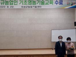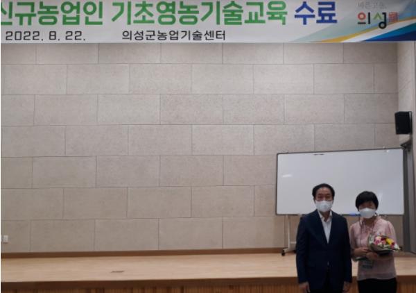 의성군은 지난 22일 비안면 친환경농업기술보급센터에서 귀농인과 예비귀농인을 대상으로 실시한‘신규농업인 기초영농기술교육’수료식을 가졌다고 밝혔다.