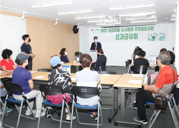 인천 중구는 주민 스스로 도시재생 실현을 위해 지난 3월부터 추진한 ‘2022 공감마을 도시재생 주민공모사업’ 성과를 확인하고 아이디어를 공유하는 성과공유회를 지난 22일 신흥·답동 공감 마실터에서 개최했다.
